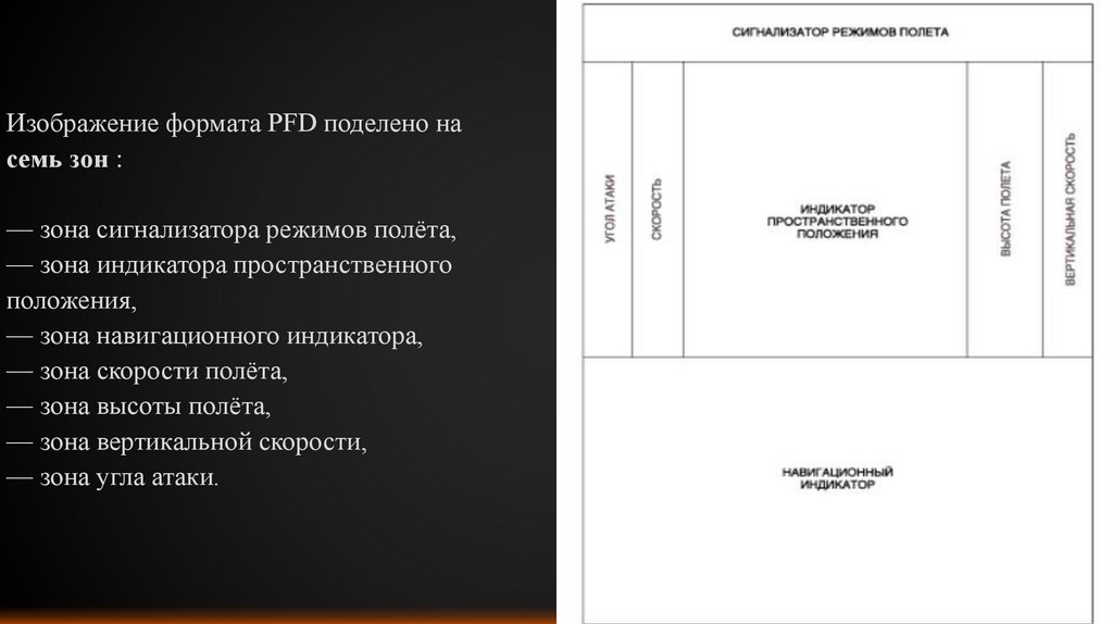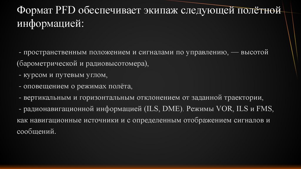 Формат PFD обеспечивает экипаж следующей полётнойинформацией:
