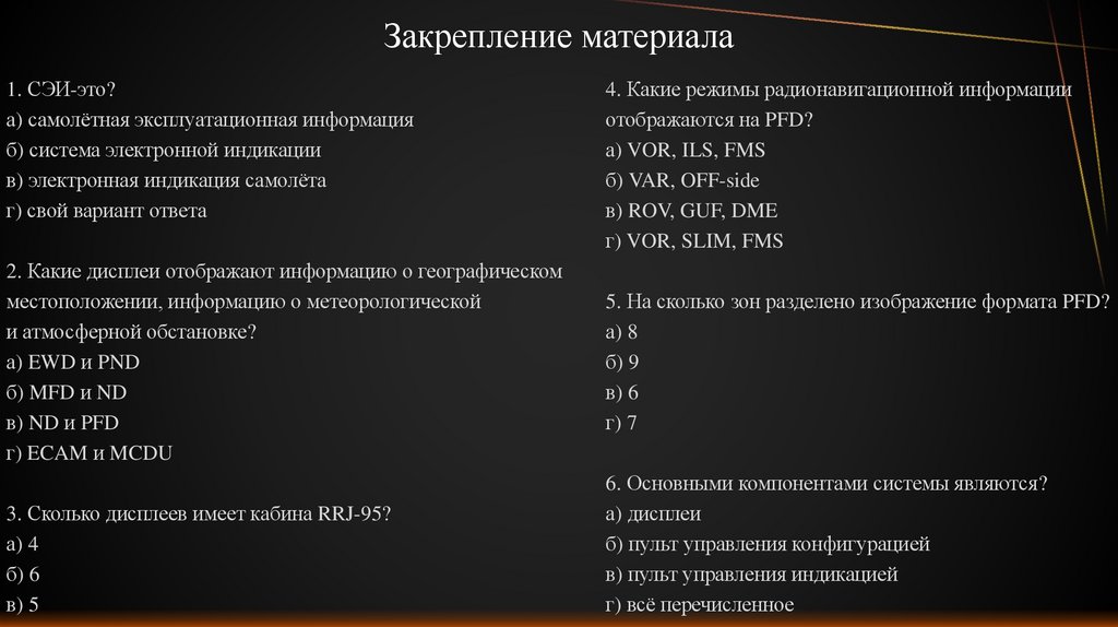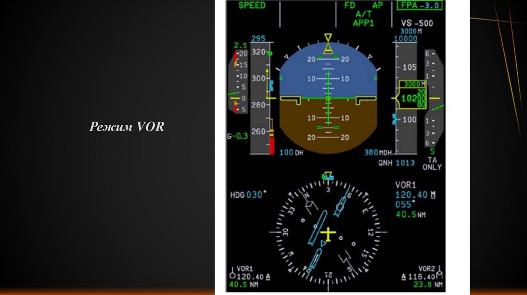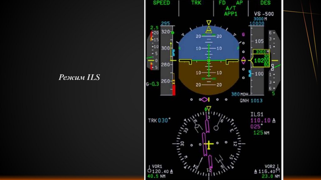 - радионавигационной информацией (ILS, DME). Режимы VOR, ILS и FMS,