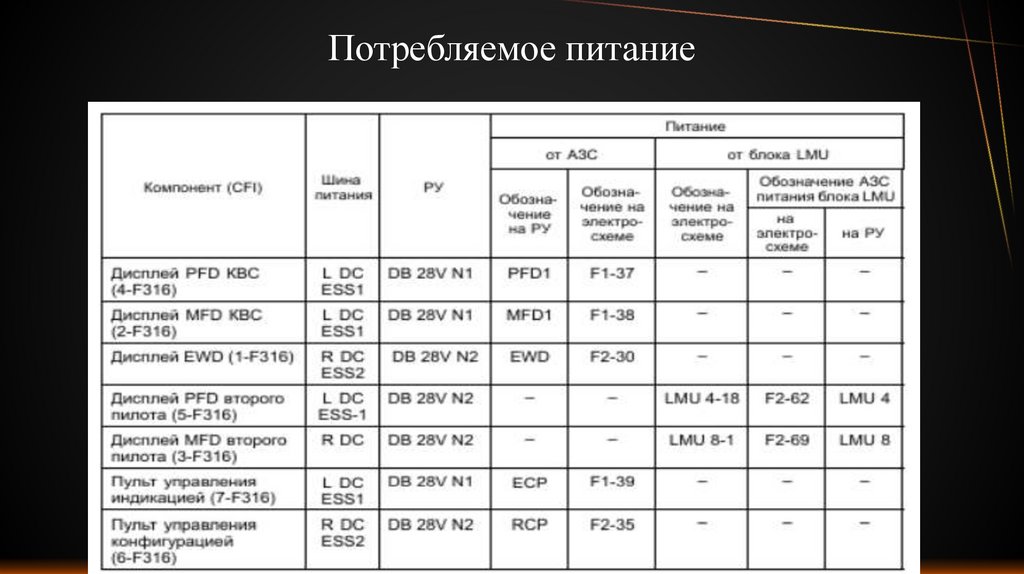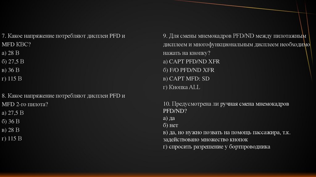 7. Какое напряжение потребляют дисплеи PFD иMFD КВС?