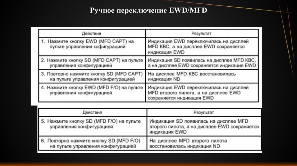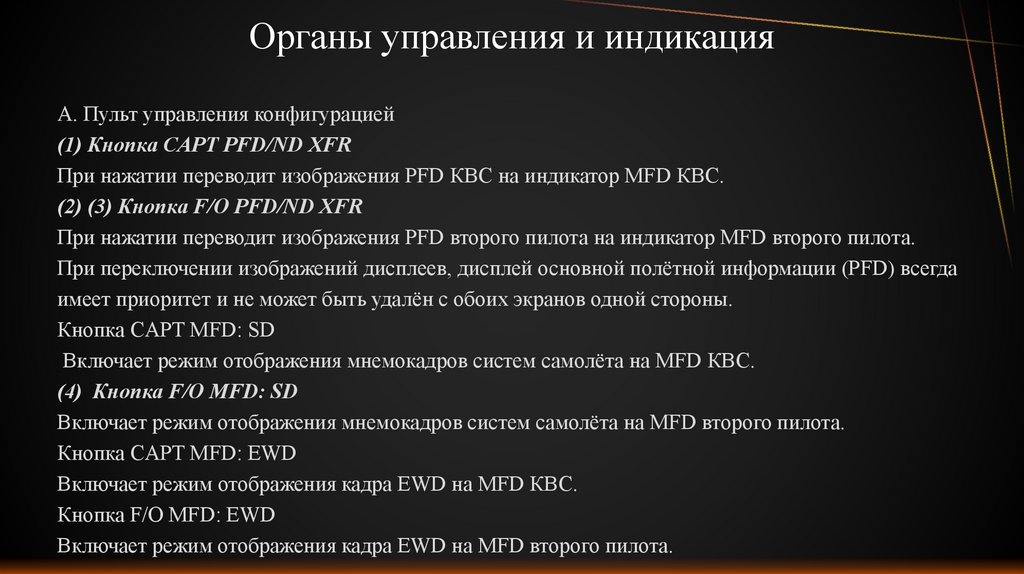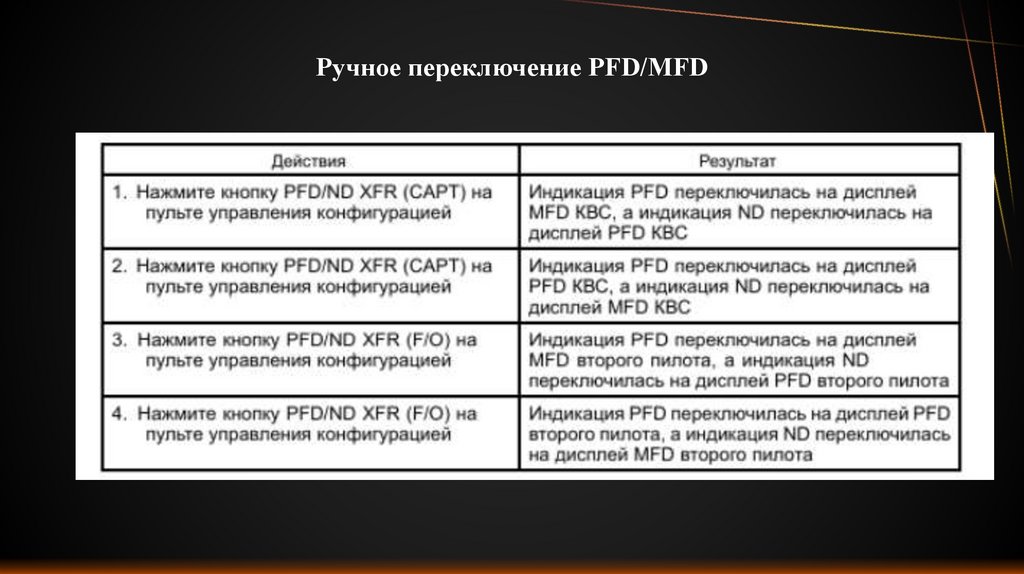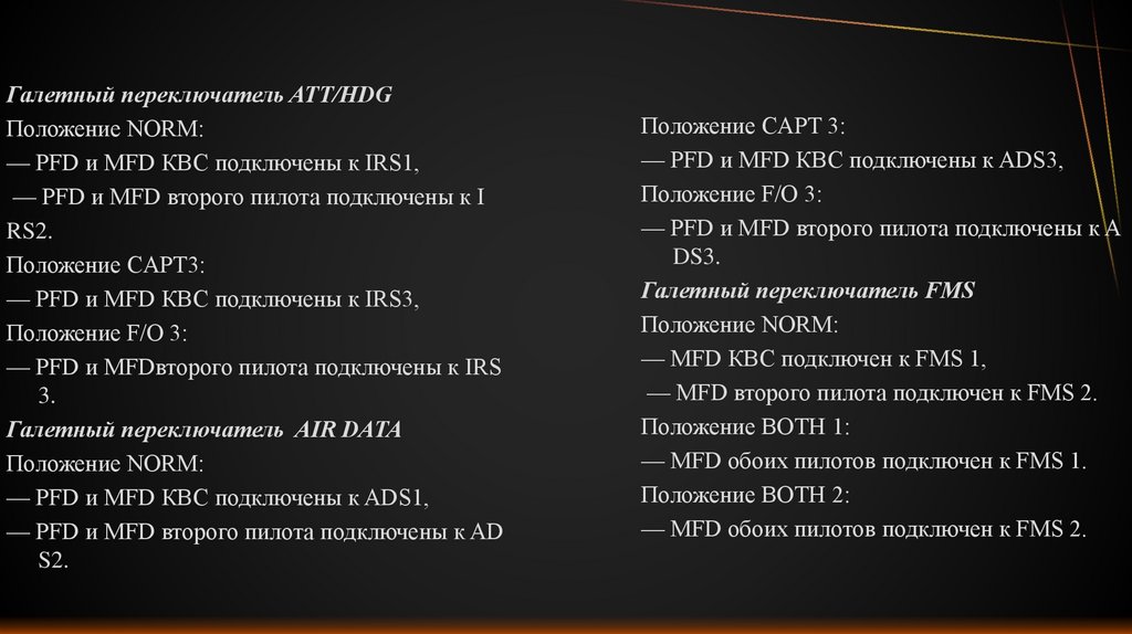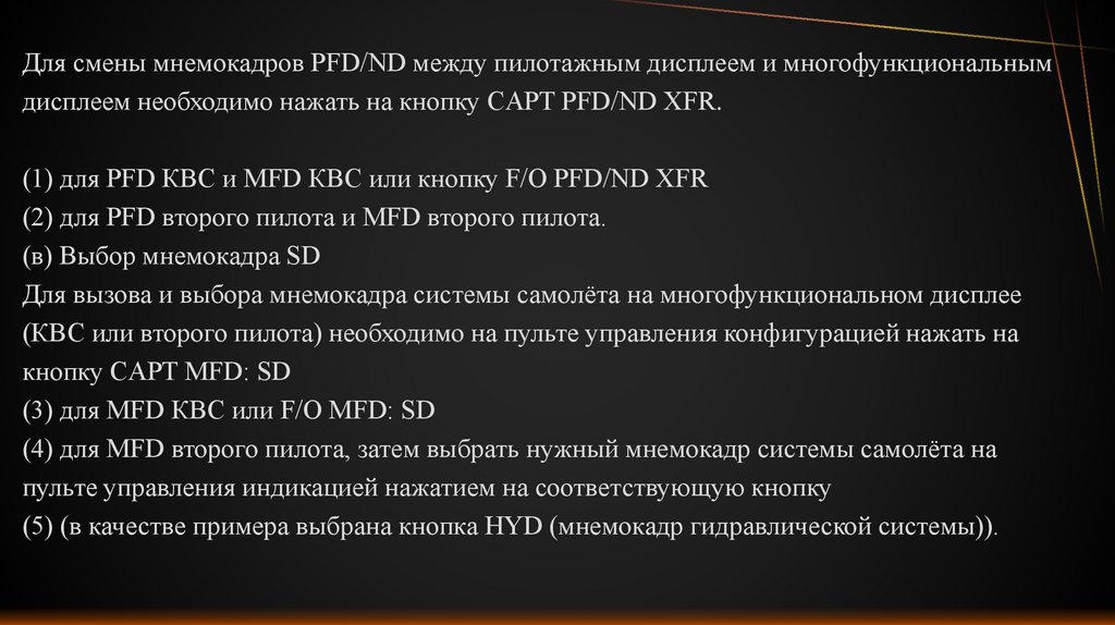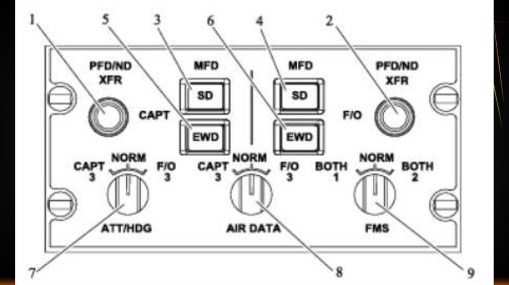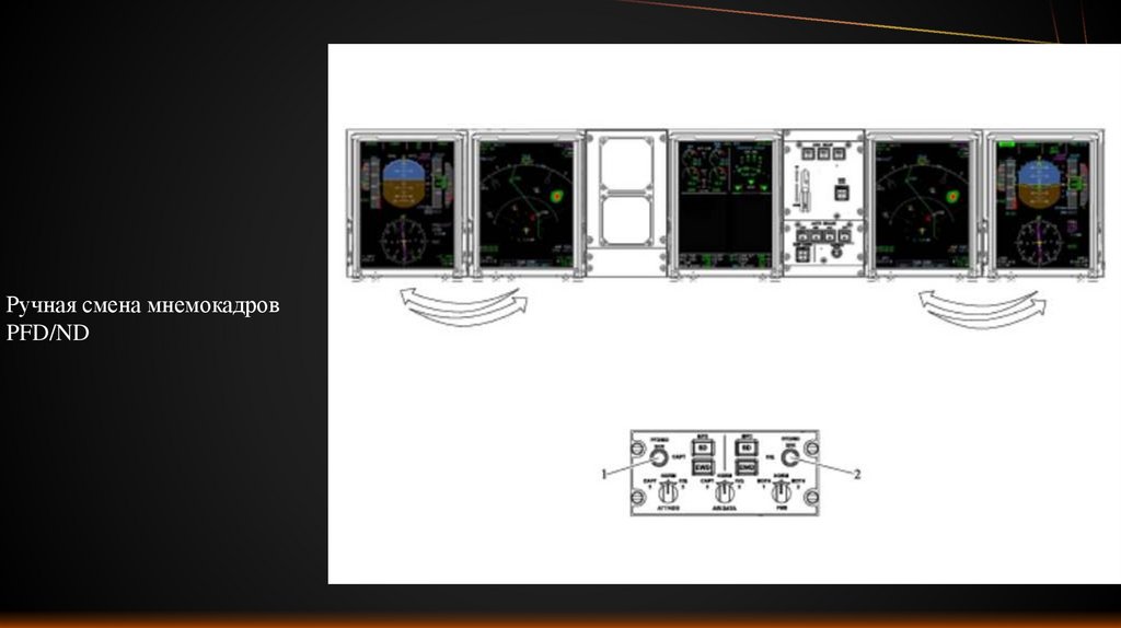 9. Для смены мнемокадров PFD/ND между пилотажным