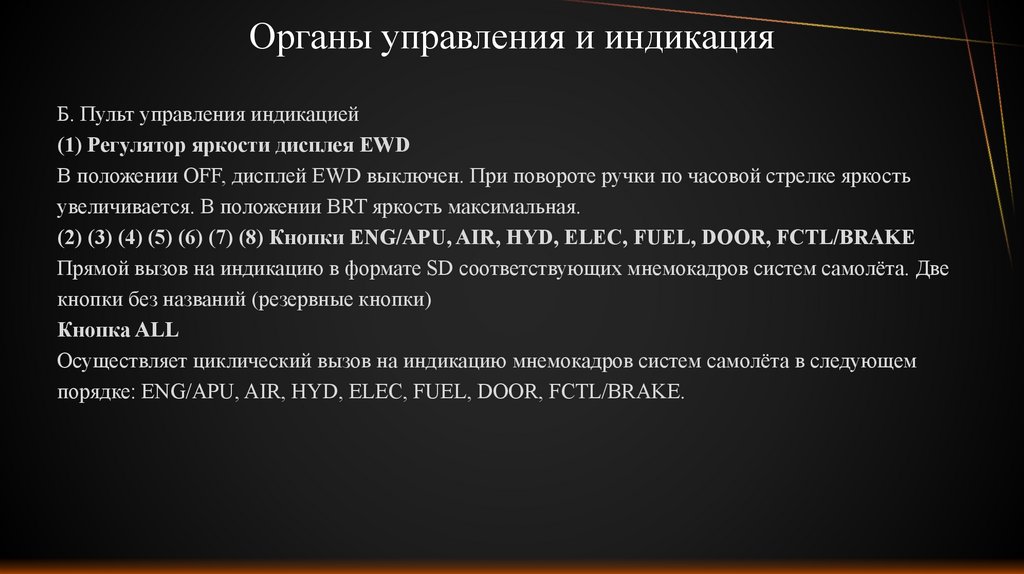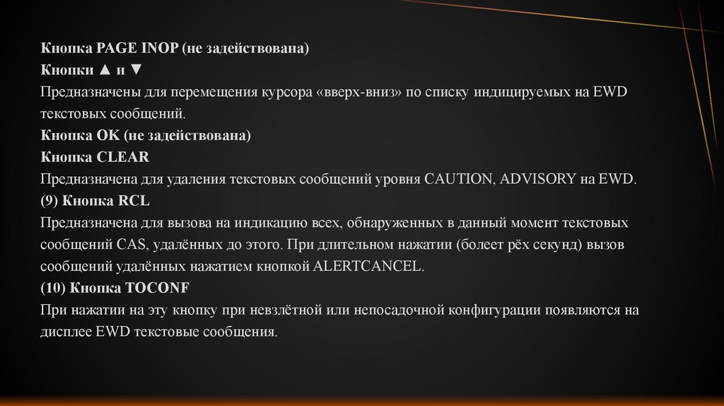 При нажатии на эту кнопку при невзлётной или непосадочной конфигурации появляются на
