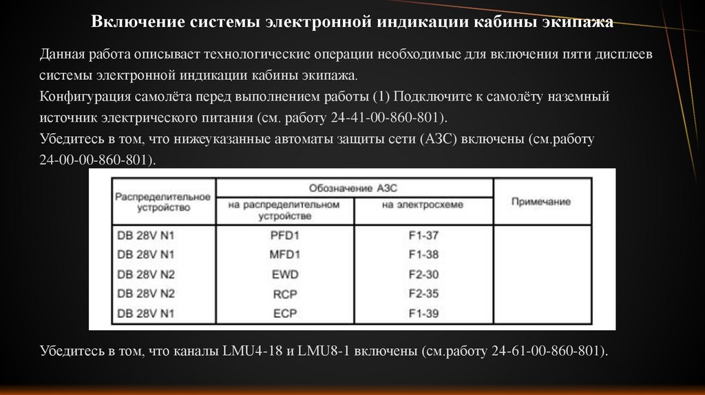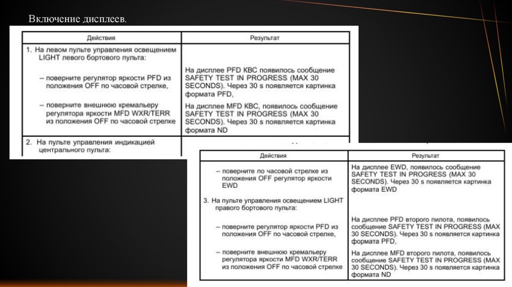Включение системы электронной индикации кабины экипажаДанная работа описывает технологические операции необходимые для включения пяти дисплеев