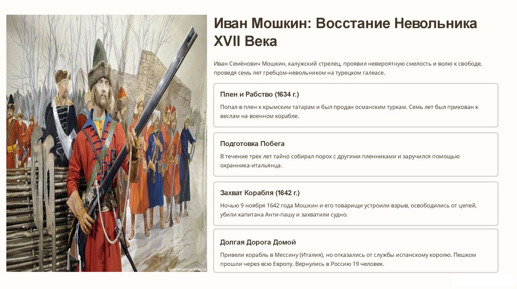 Иван Семёнович Мошкин, калужский стрелец, проявил невероятную смелость и волю к свободе,