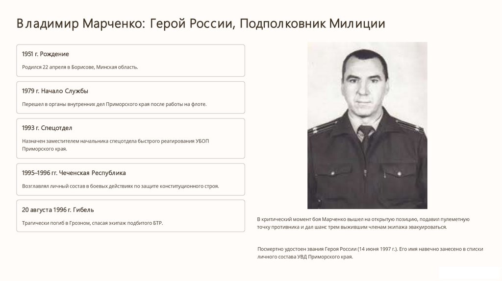 В л адимир Марченко: Герой России, Подпол ковник Мил иции1951 г. Рождение