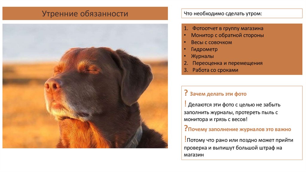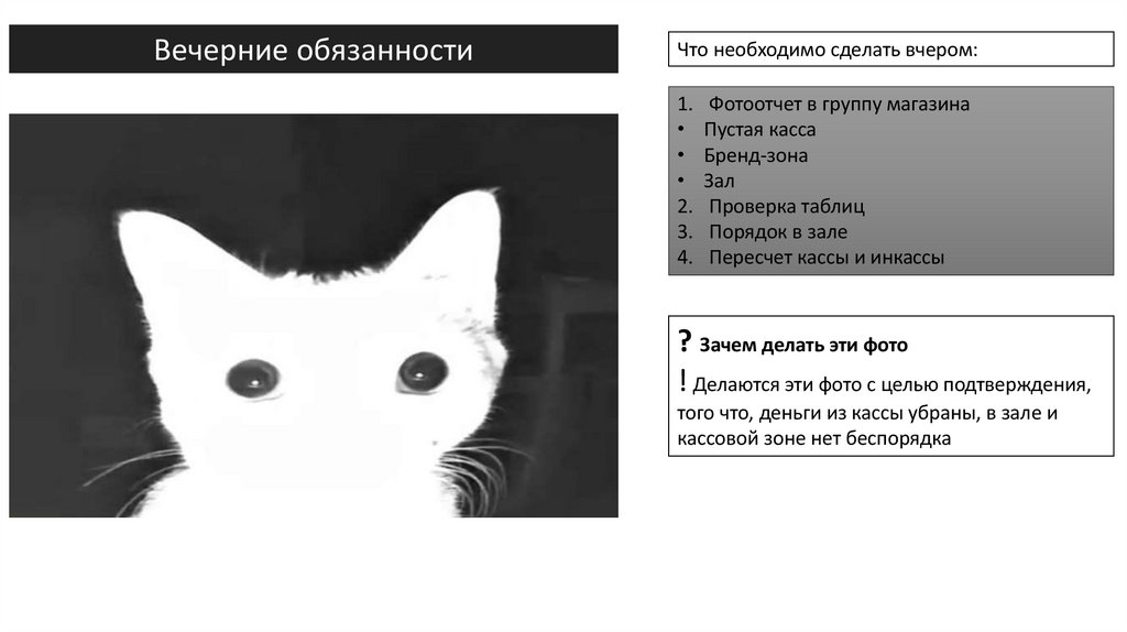 • Утренние обязанности• Печать ценников