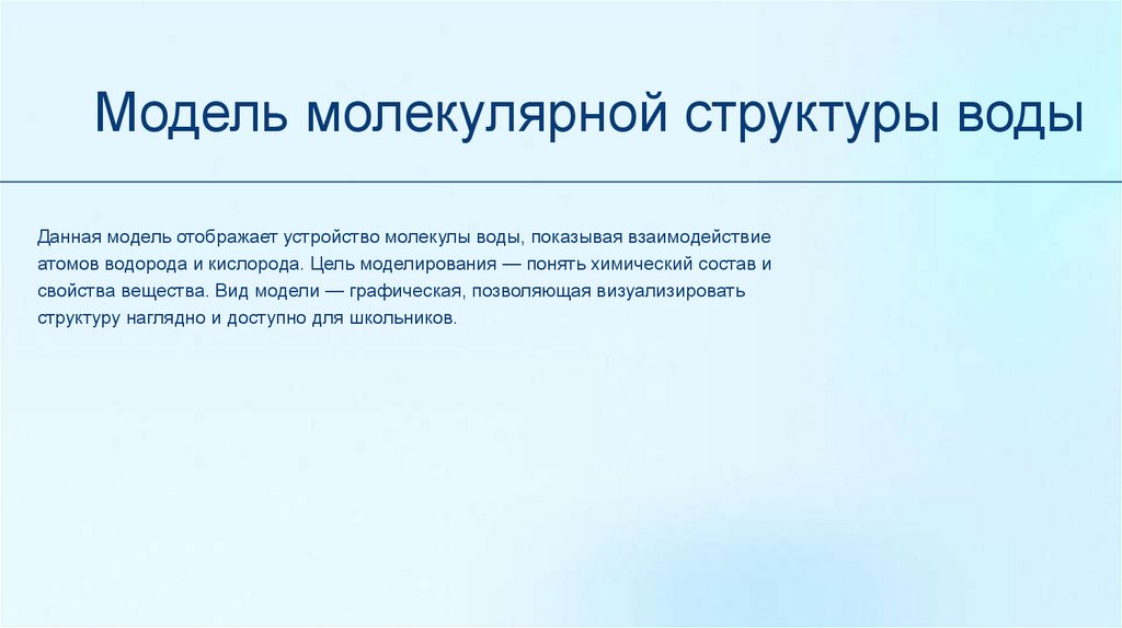 свойства вещества. Вид модели — графическая, позволяющая визуализировать