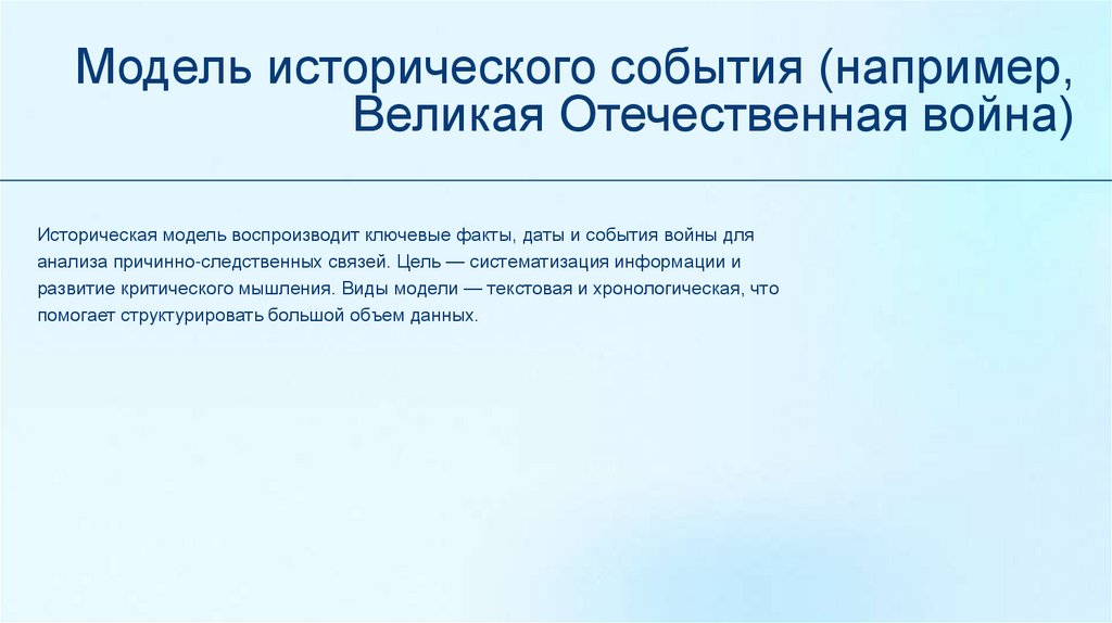 Модель исторического события (например,Великая Отечественная война)