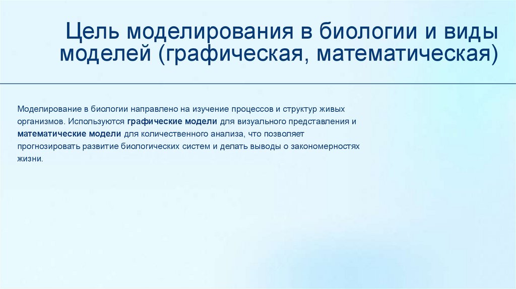 Цель моделирования в биологии и видымоделей (графическая, математическая)
