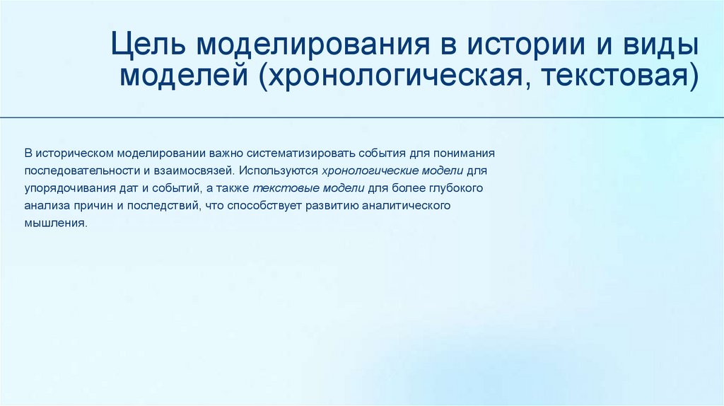 Цель моделирования в истории и видымоделей (хронологическая, текстовая)