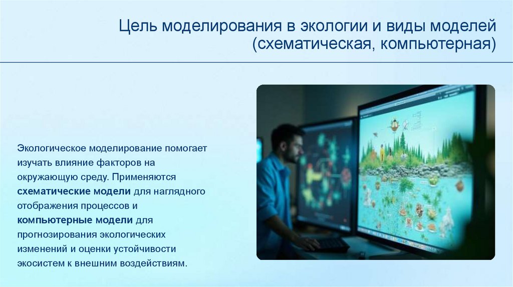 Цель моделирования в экологии и виды моделей(схематическая, компьютерная)
