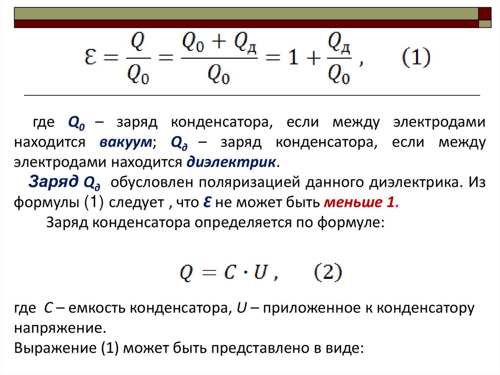 где Q0 – заряд конденсатора, если между электродаминаходится вакуум; Qд – заряд конденсатора, если между
