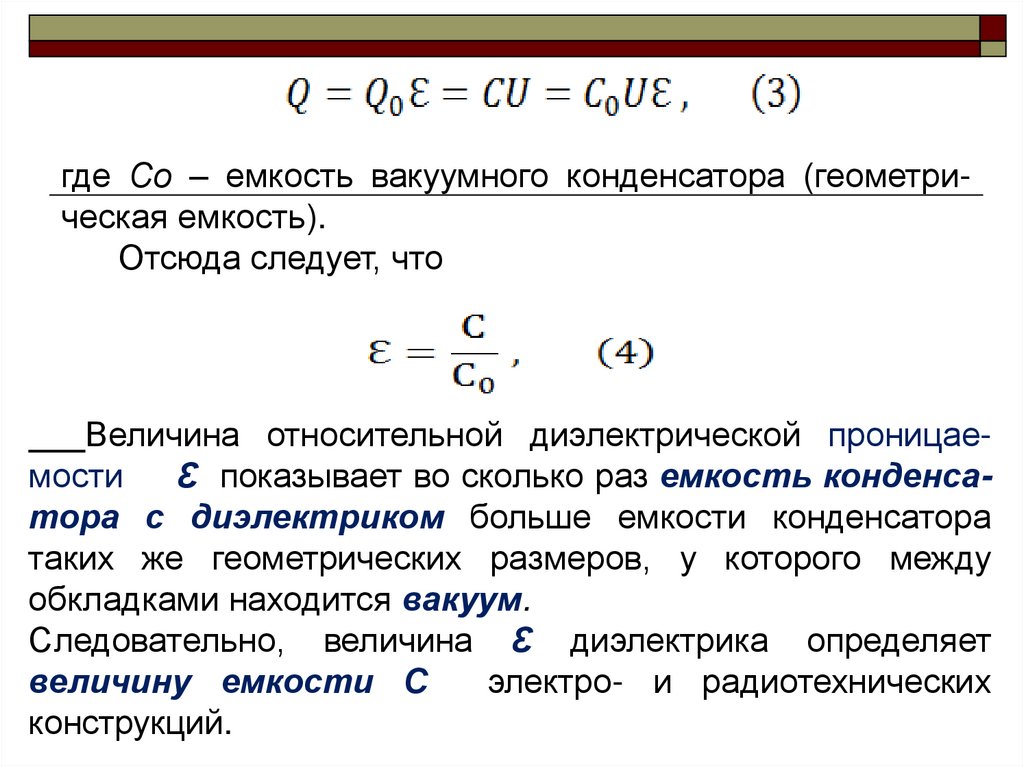 где Со – емкость вакуумного конденсатора (геометрическая емкость).Отсюда следует, что