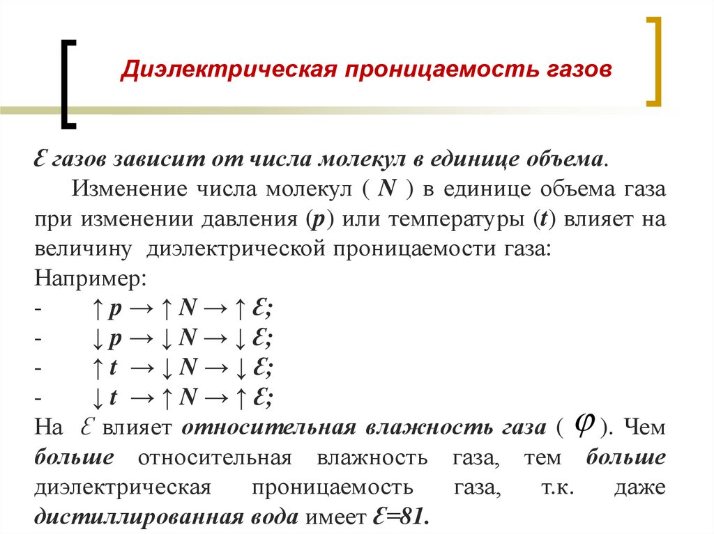 Диэлектрическая проницаемость газовԐ газов зависит от числа молекул в единице объема.