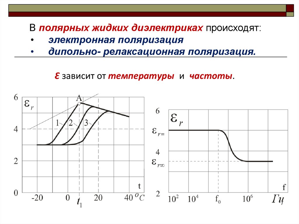 Ԑ полярных диэлектриков зависит от температурыи частоты приложенного поля;