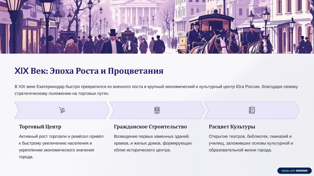 XIX Век: Эпоха Роста и ПроцветанияВ XIX веке Екатеринодар быстро превратился из военного поста в крупный экономический и культурный центр Юга России, благодаря своему