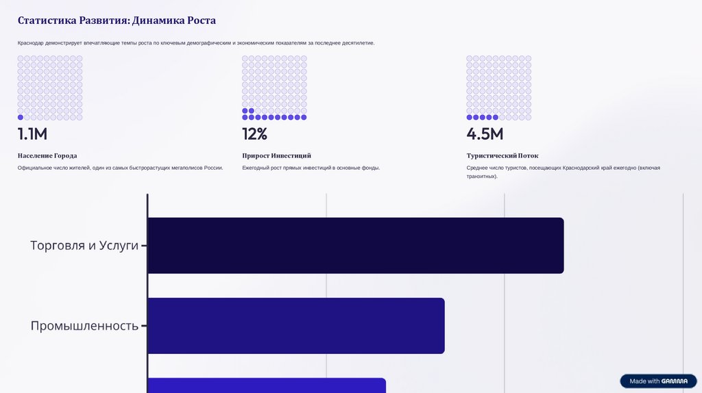 Статистика Развития: Динамика РостаКраснодар демонстрирует впечатляющие темпы роста по ключевым демографическим и экономическим показателям за последнее десятилетие.