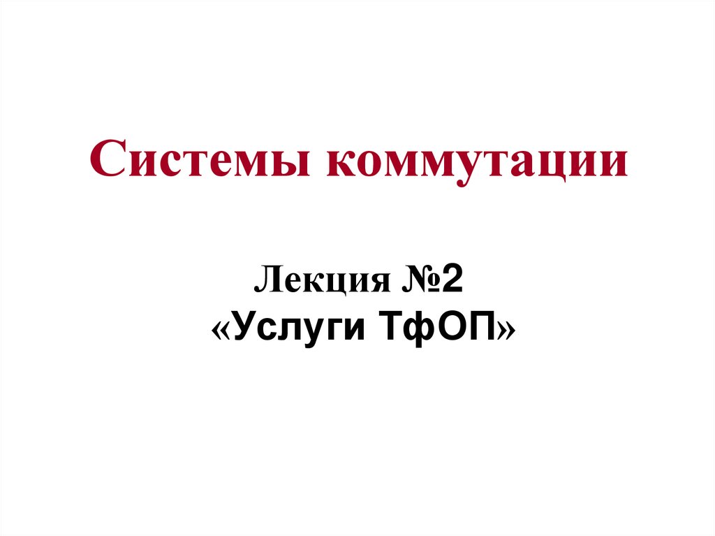 1. Системы коммутации Лекция №2 «Услуги ТфОП»