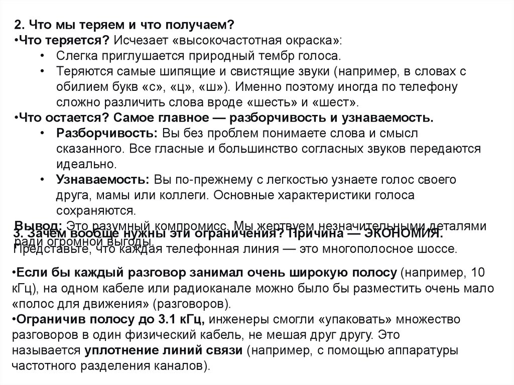 собеседника. Более низкие и высокие частоты обрезаются.