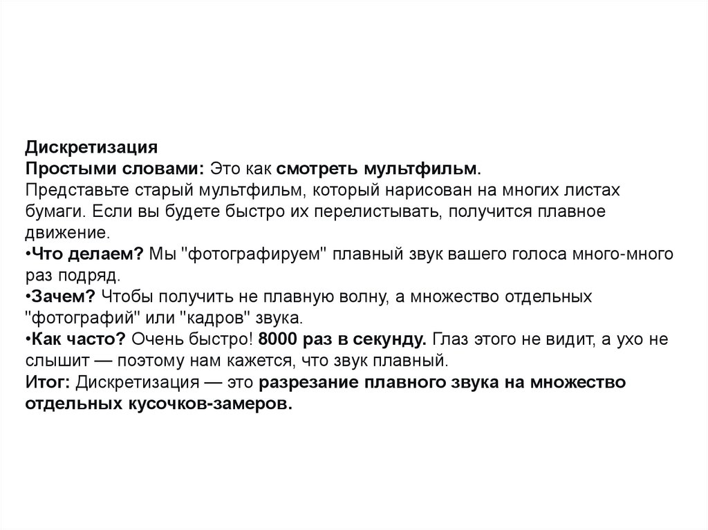 • Дискретизация: Частота взятия отсчетов аналогового сигнала — 8000