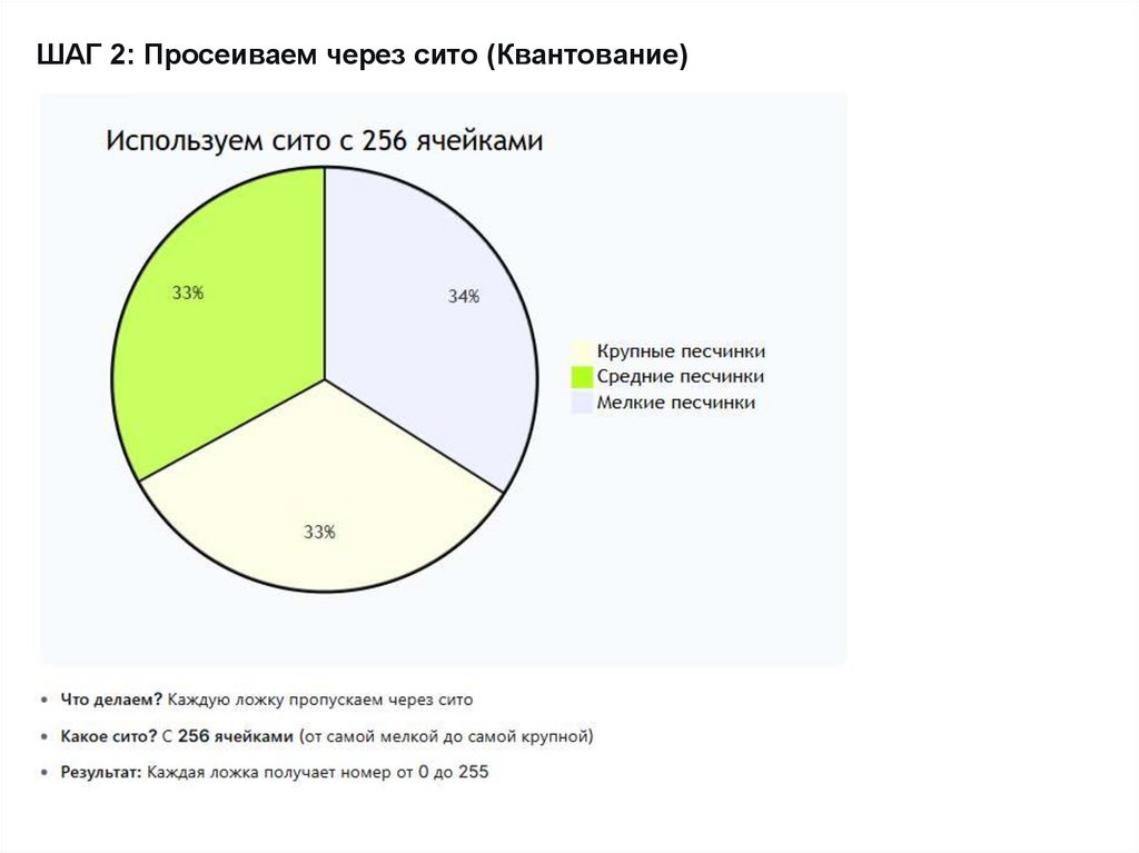 • Квантование: Каждый отсчет кодируется 8-битным числом.