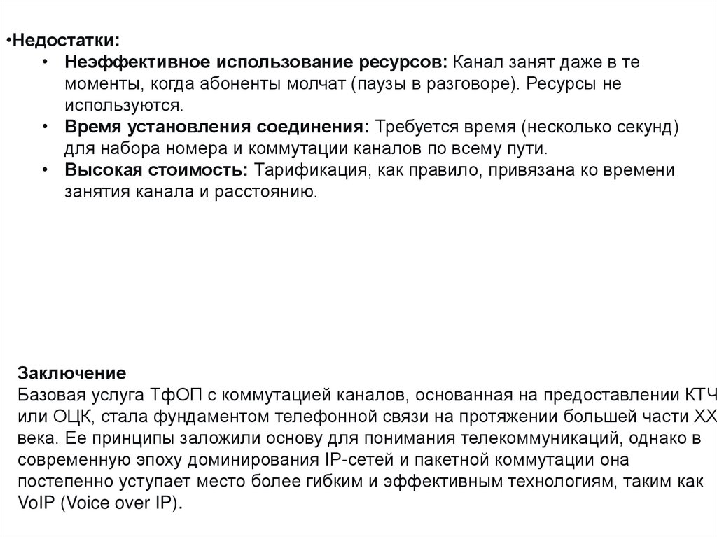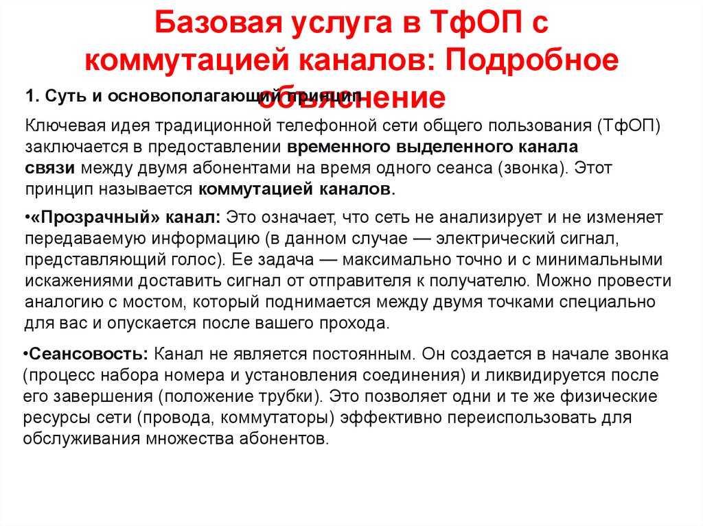 Базовая услуга в ТфОПс коммутацией каналов