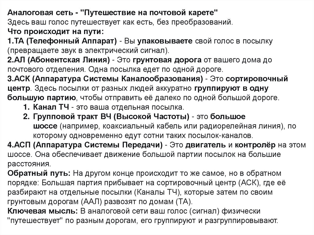 Ключевая мысль: В аналоговой сети ваш голос (сигнал) физически