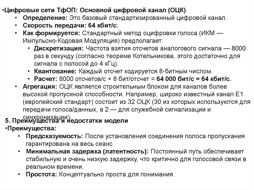 •Цифровые сети ТфОП: Основной цифровой канал (ОЦК)• Определение: Это базовый стандартизированный цифровой канал.