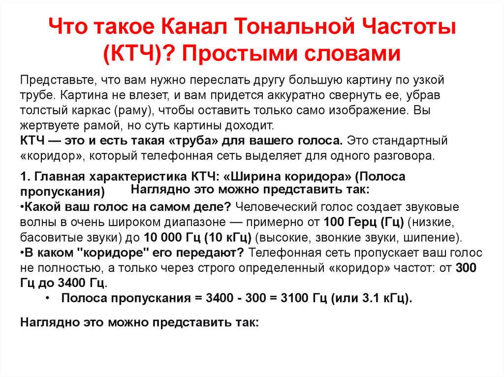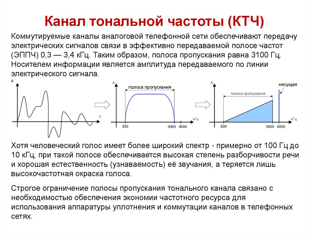 •Аналоговые сети ТфОП: Канал тональной частоты (КТЧ)
