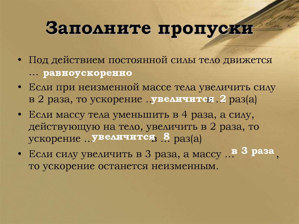 • Если силу увеличить в 3 раза, а массу …в 3 раза ,