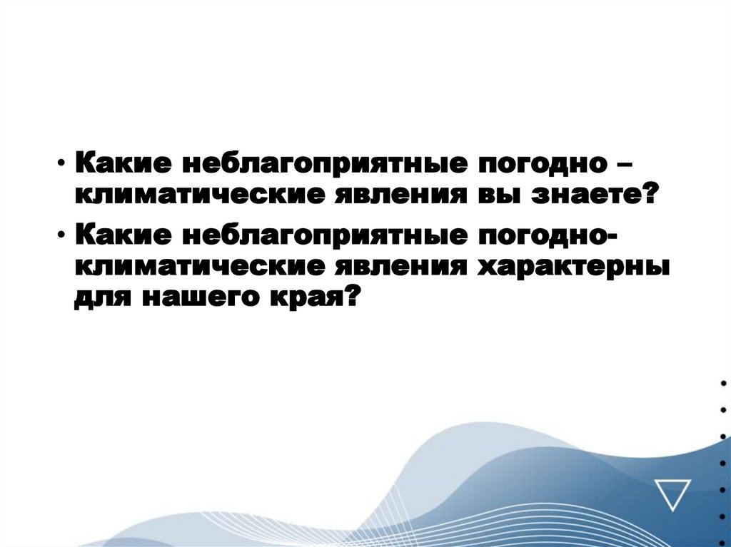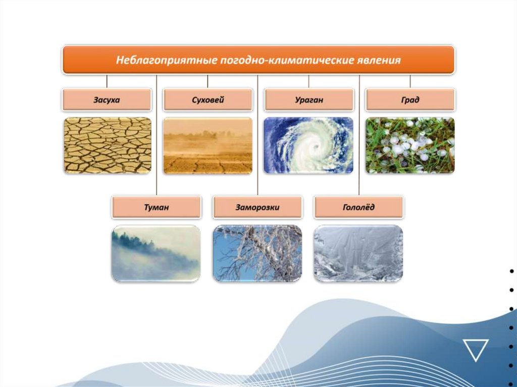 • Какие неблагоприятные погодно –климатические явления вы знаете?