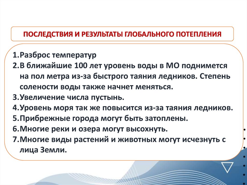 ПОСЛЕДСТВИЯ И РЕЗУЛЬТАТЫ ГЛОБАЛЬНОГО ПОТЕПЛЕНИЯ1.Разброс температур