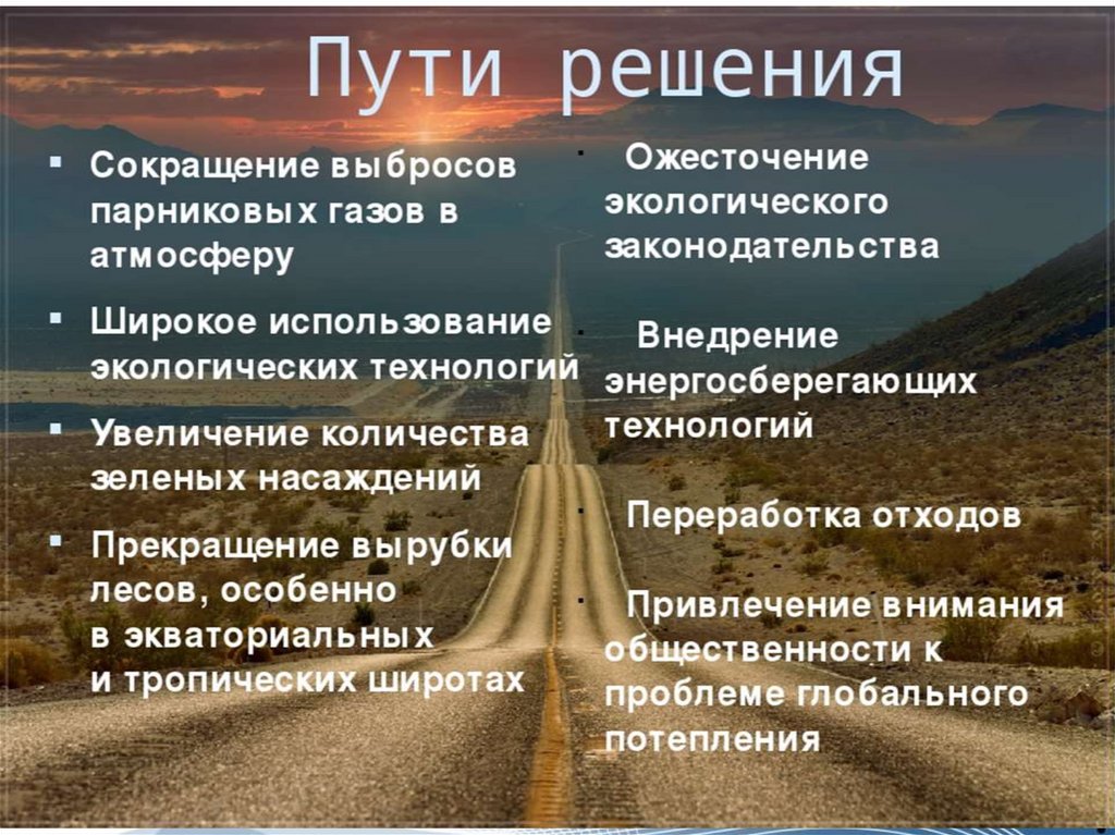 • Сокращение площади тропических лесов;• Загрязнение воздуха;