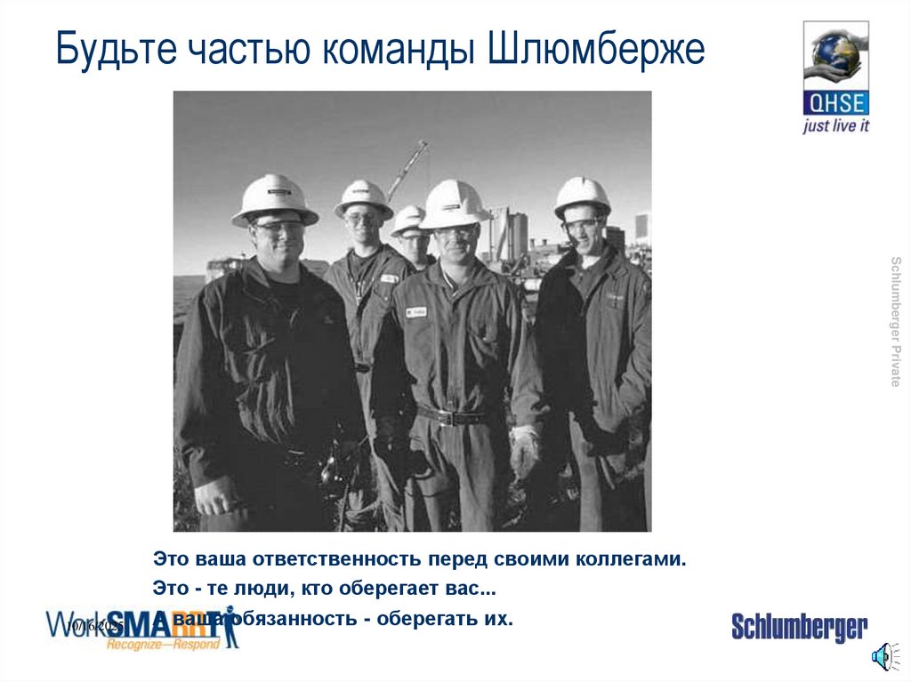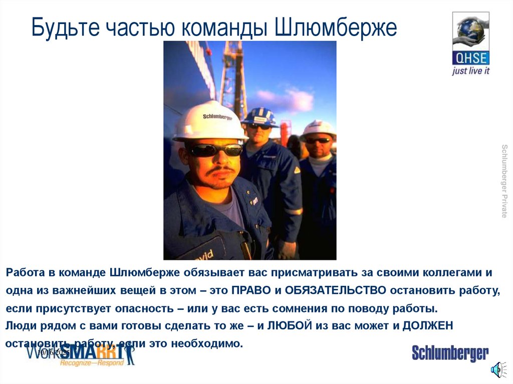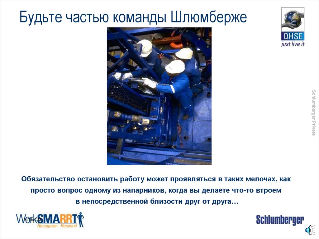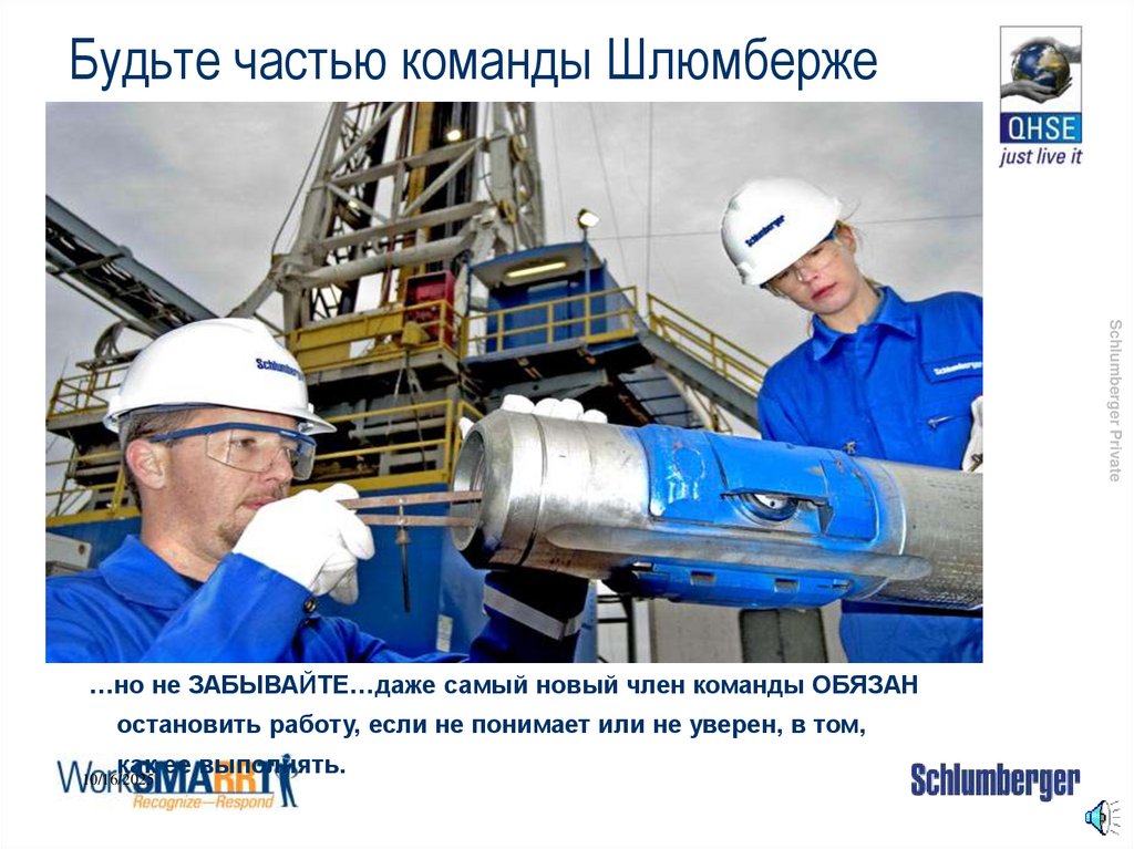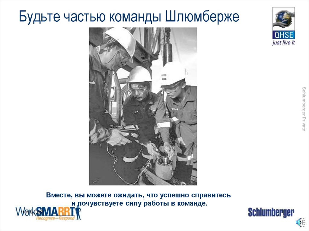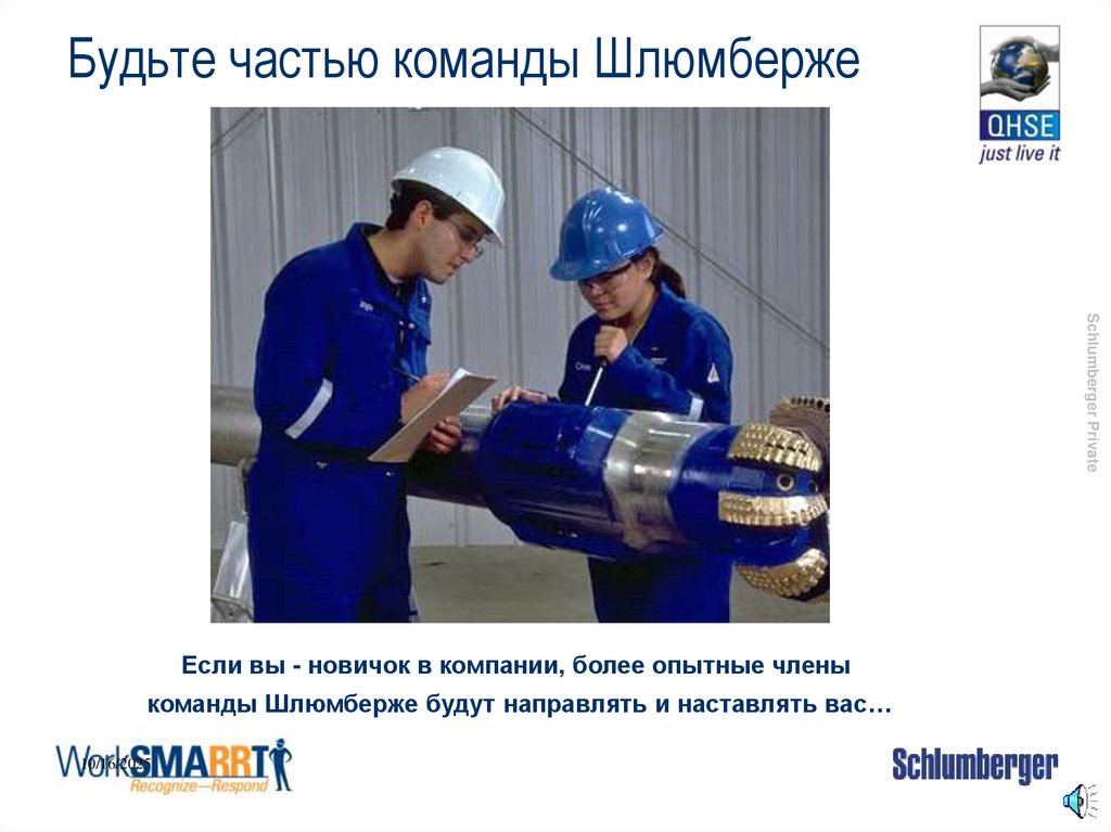 Работа в команде Шлюмберже обязывает вас присматривать за своими коллегами и