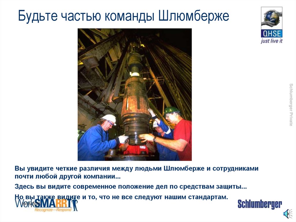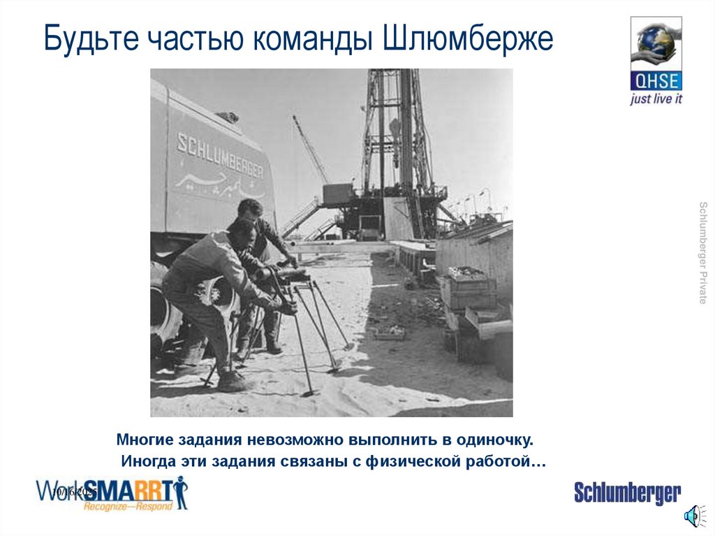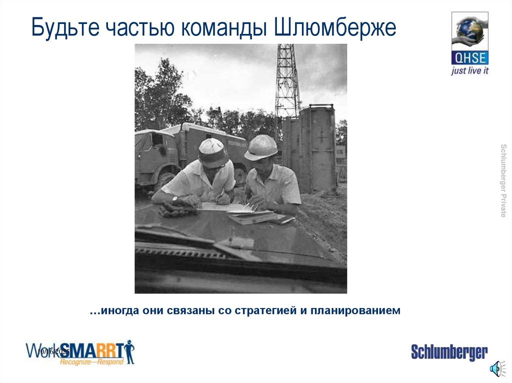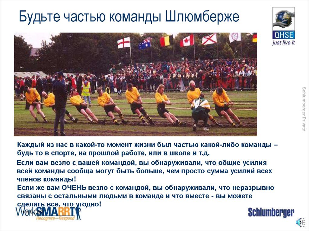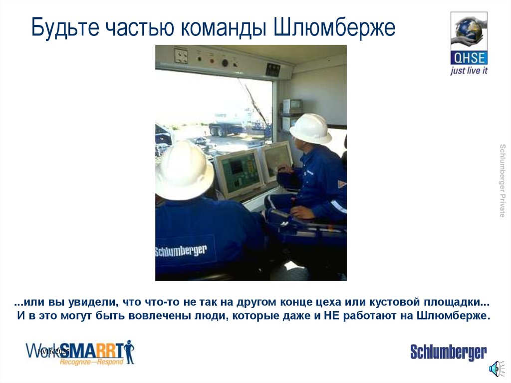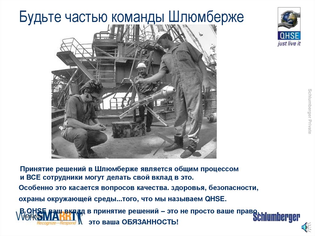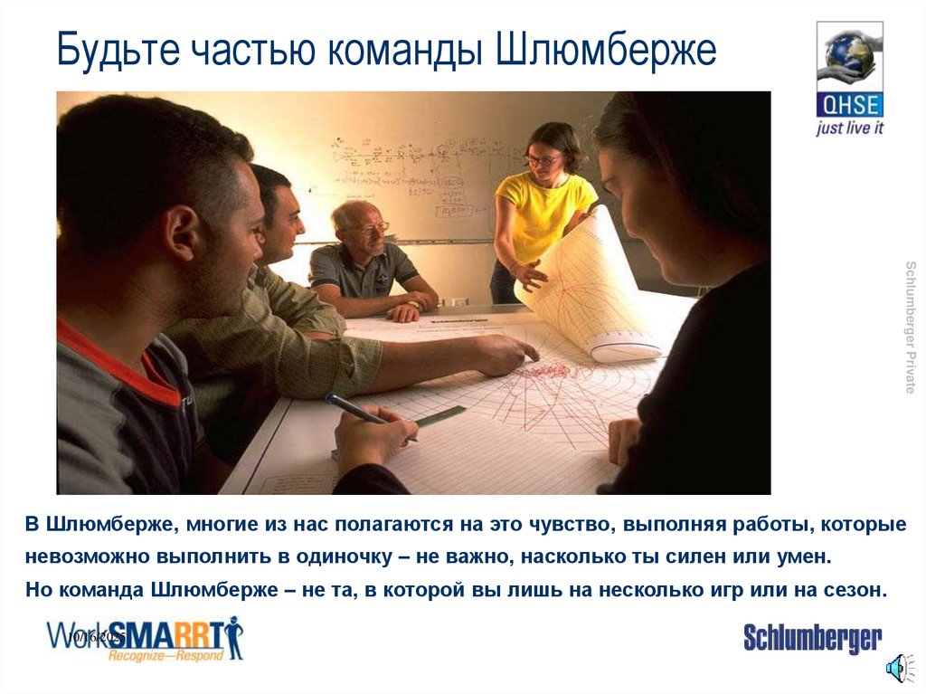Работа в команде Шлюмберже обязывает вас присматривать за своими коллегами и