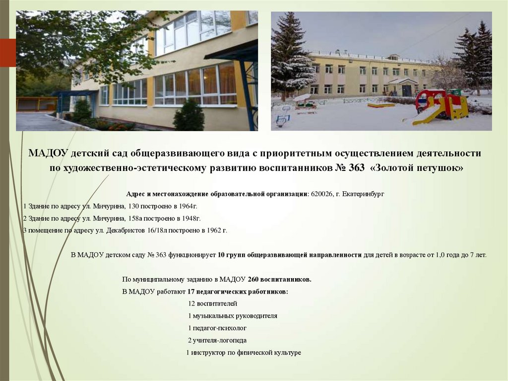 МАДОУ детский сад общеразвивающего вида с приоритетным осуществлением деятельностипо художественно-эстетическому развитию воспитанников № 363 «Золотой петушок»