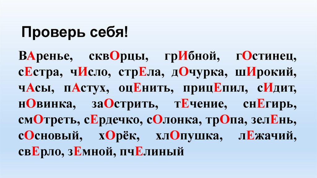 ВАренье, сквОрцы, грИбной, гОстинец,