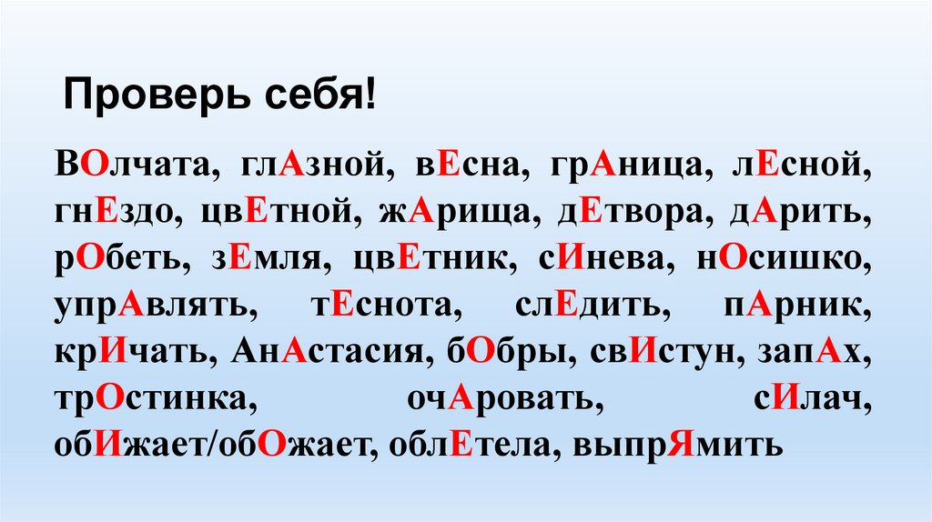 упрАвлять, тЕснота, слЕдить, пАрник,