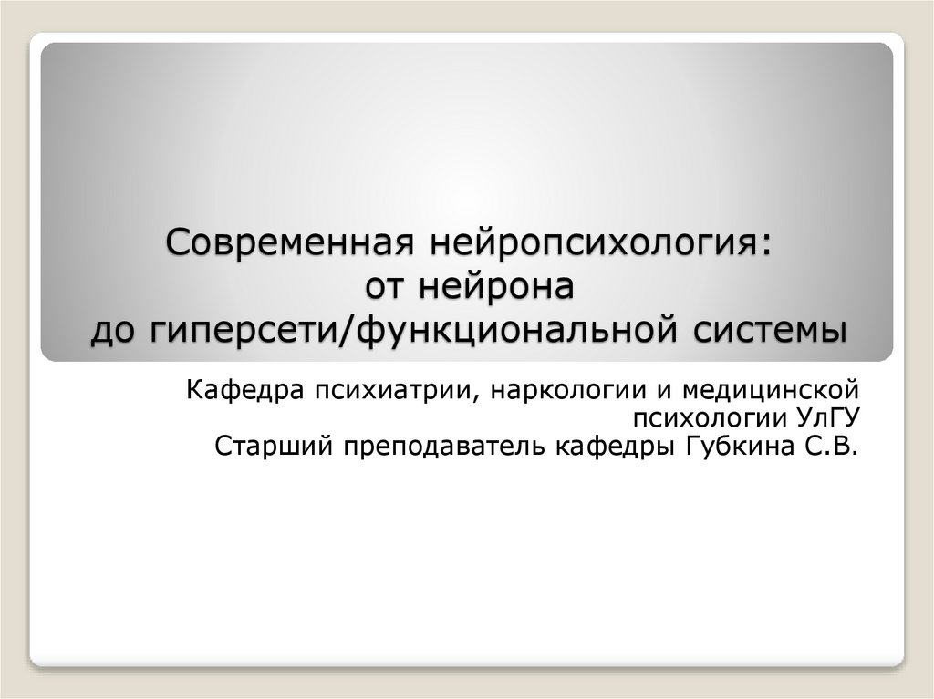 1. Современная нейропсихология: от нейрона до гиперсети/функциональной системы