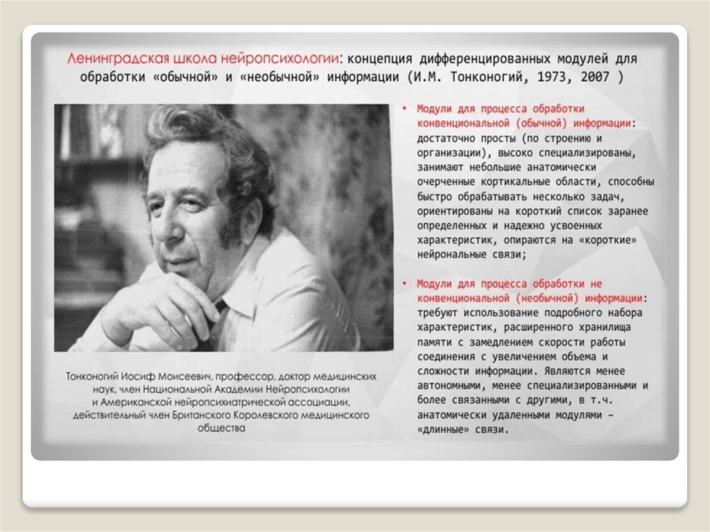 «..Как самостоятельный раздел биологической психологии, имеющий своютеорию, методологию поиска и методы исследования, нейропсихология изучает