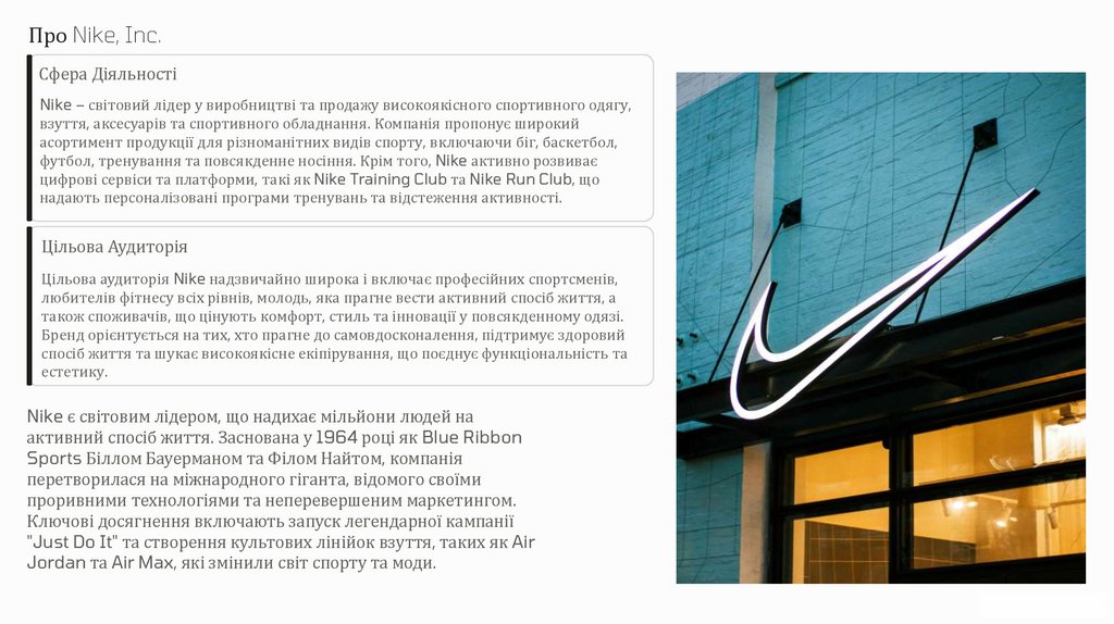 Nike – світовий лідер у виробництві та продажу високоякісного спортивного одягу,