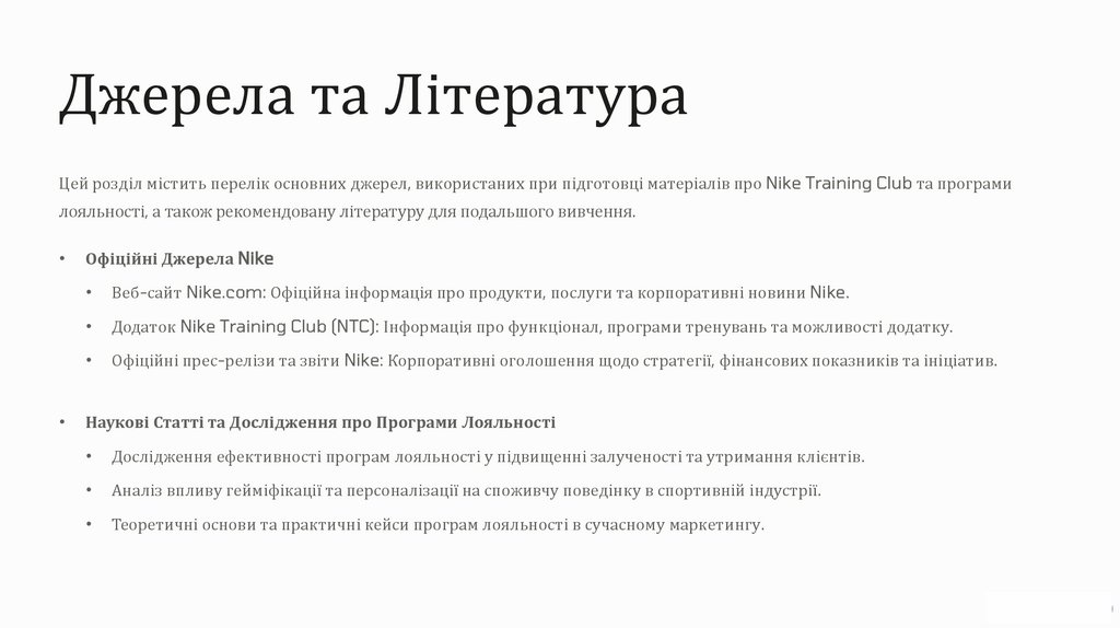 Джерела та ЛітератураЦей розділ містить перелік основних джерел, використаних при підготовці матеріалів про Nike Training Club та програми