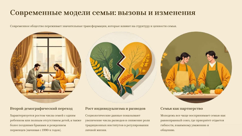 Современные модели семьи: вызовы и измененияСовременное общество переживает значительные трансформации, которые влияют на структуру и ценности семьи.