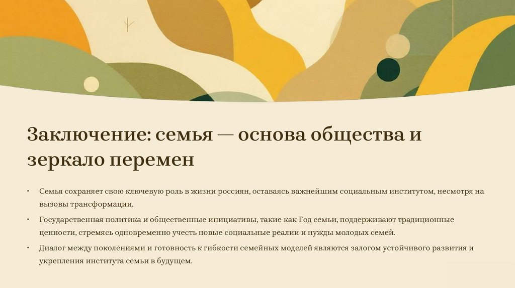 ценности, стремясь одновременно учесть новые социальные реалии и нужды молодых семей.