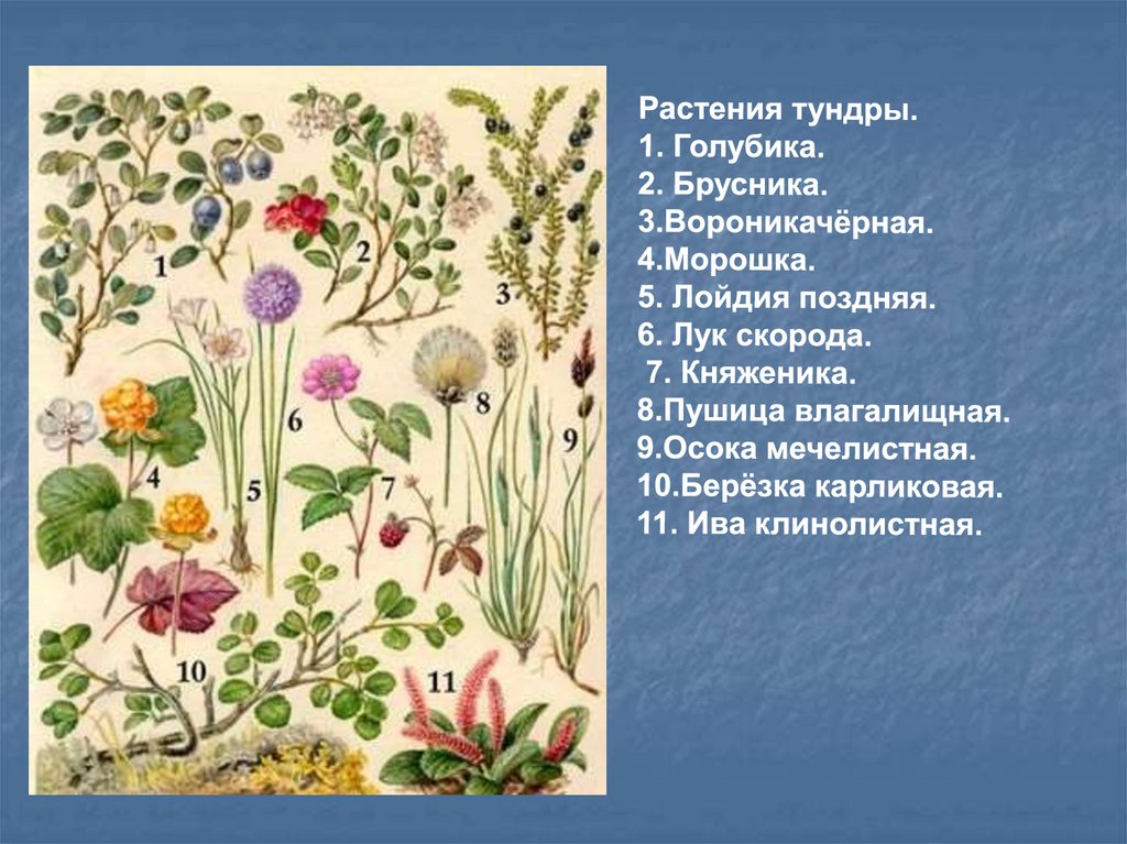 Как приспособлены растения в тундре :•карликовые формы растений;