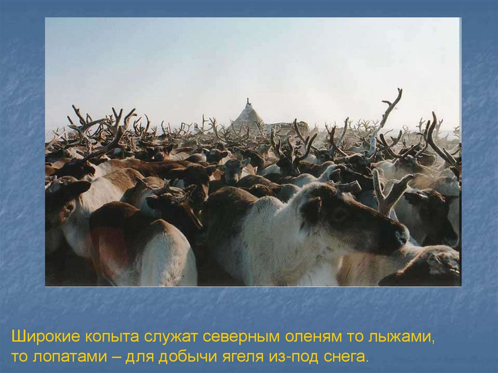 Широкие копыта служат северным оленям то лыжами,то лопатами – для добычи ягеля из-под снега.