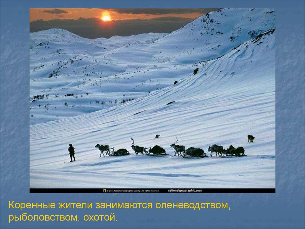 Коренные жители занимаются оленеводством,рыболовством, охотой.