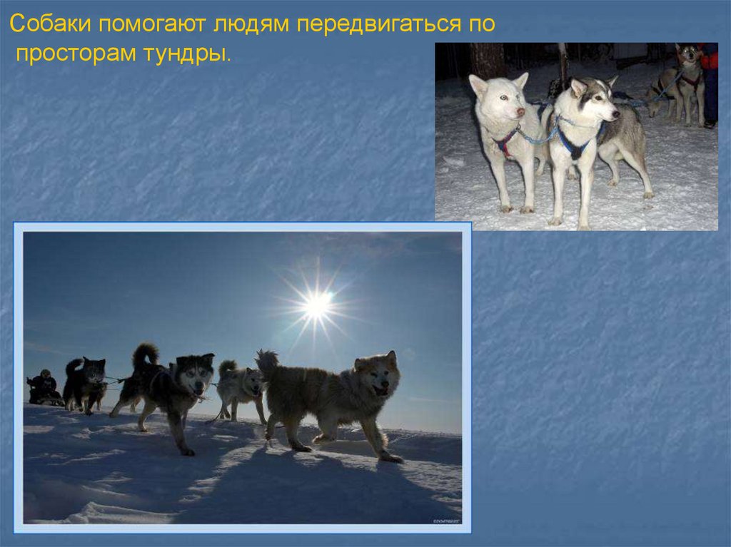 Собаки помогают людям передвигаться попросторам тундры.