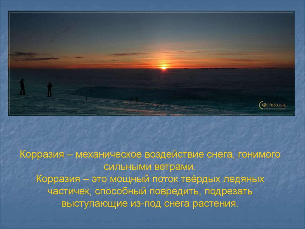 Корразия – механическое воздействие снега, гонимогосильными ветрами.