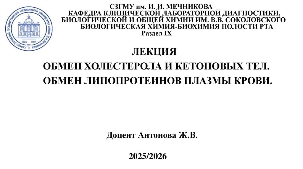 СЗГМУ им. И. И. МЕЧНИКОВАКАФЕДРА КЛИНИЧЕСКОЙ ЛАБОРАТОРНОЙ ДИАГНОСТИКИ,