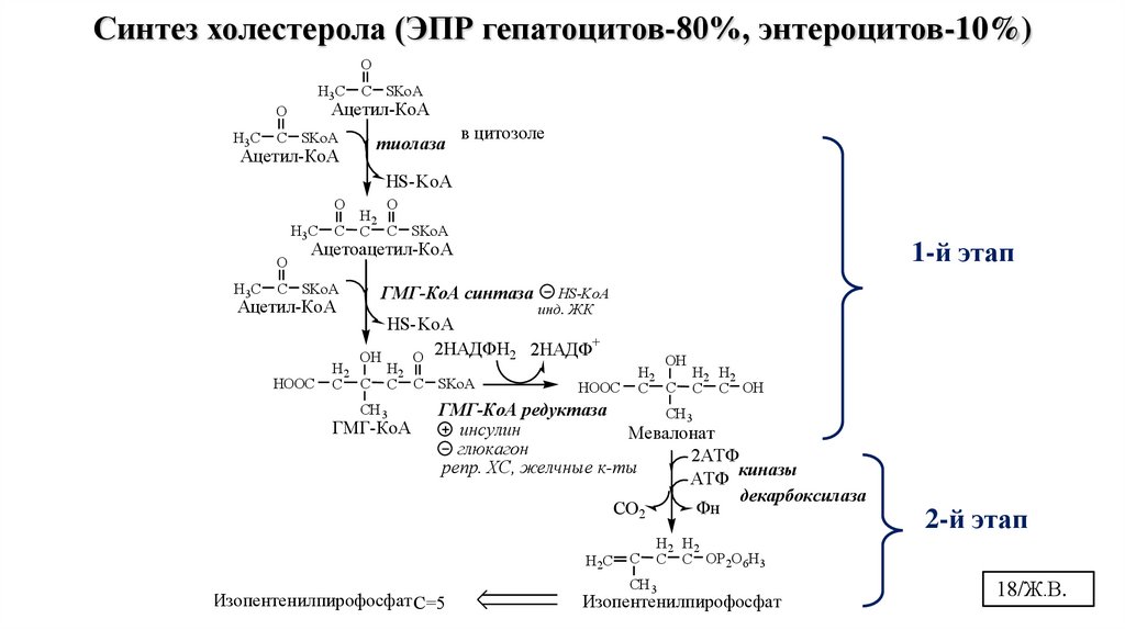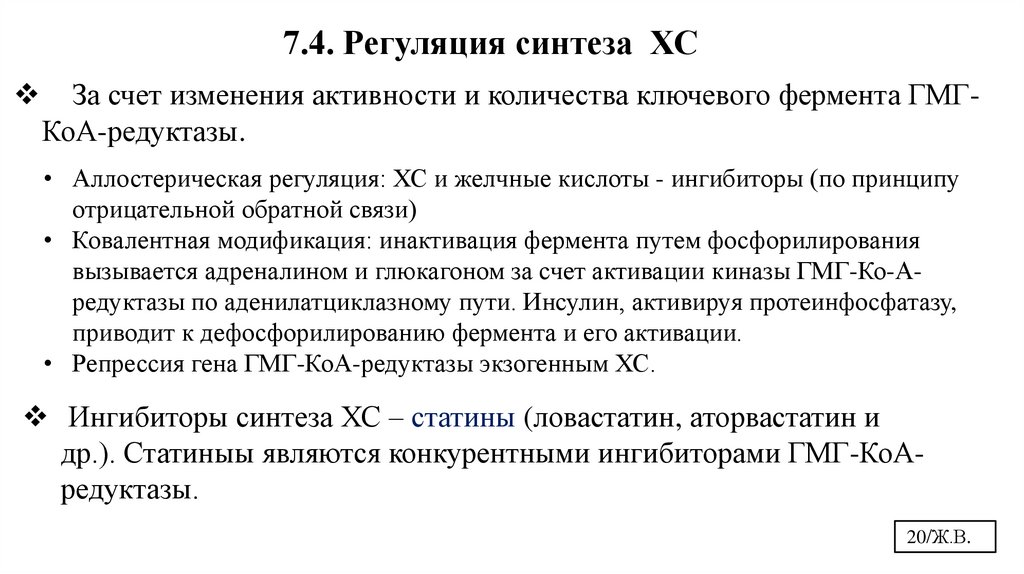 7.3. Синтез ХС: этапы и реакции. 7.4. Регуляция синтеза ХС. 7.5. Этерификация ХС.